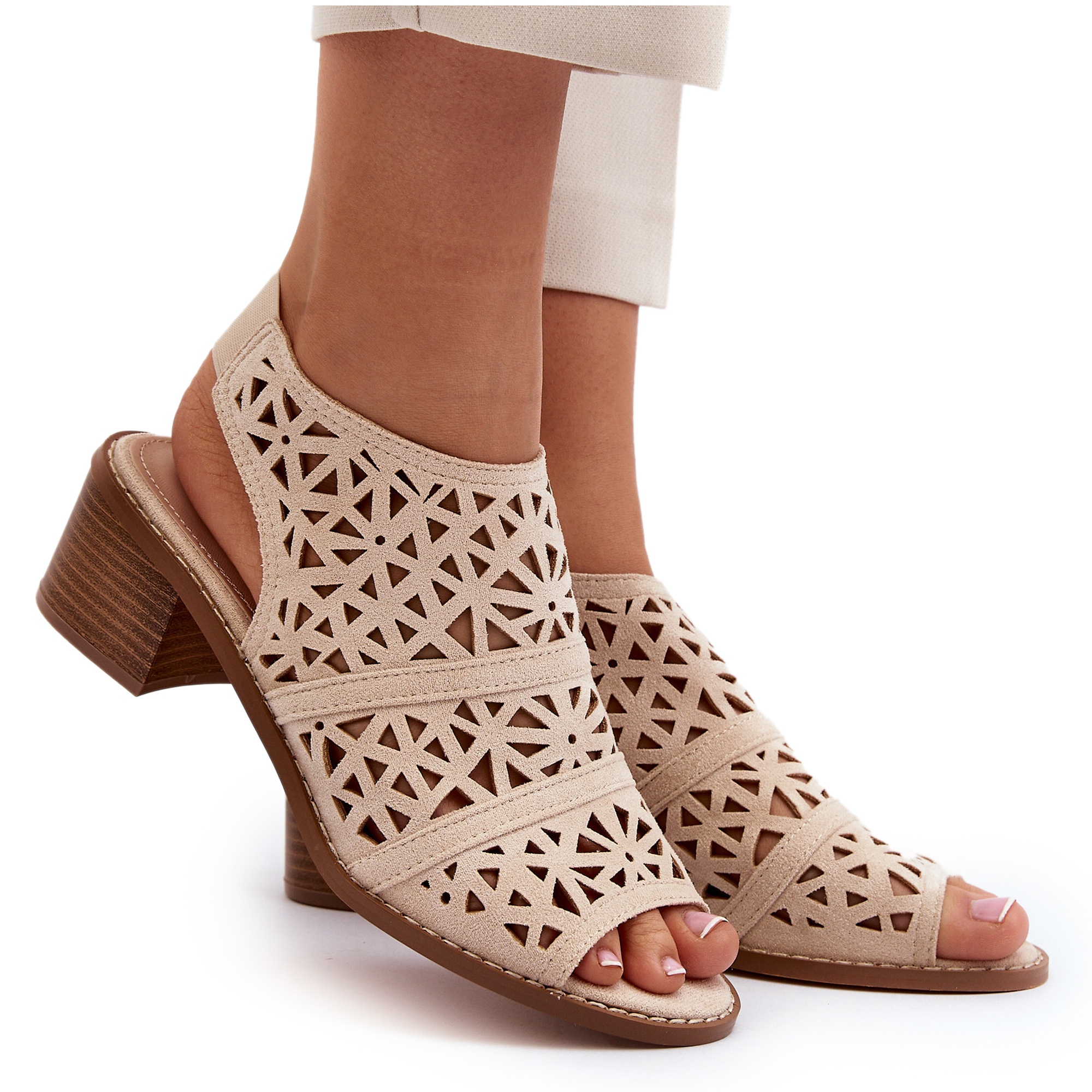 Détails: Sandales à talons hauts ajourées beiges Serapina