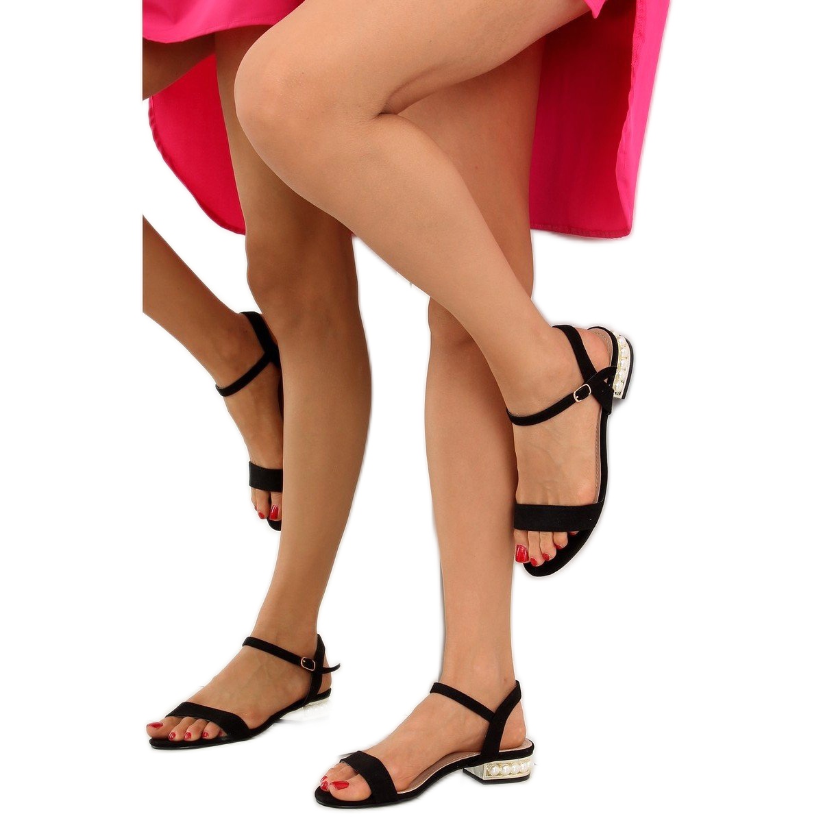 Les sandales sont fabriquées en daim écologique de haute qualité, ce qui contribue non seulement à leur respect de l'environnement, mais assure également un confort de port extraordinaire. Un avantage supplémentaire est un talon bloc qui stabilise le pied, et des perles intrigantes ajoutent de l'élégance et un charme extraordinaire.