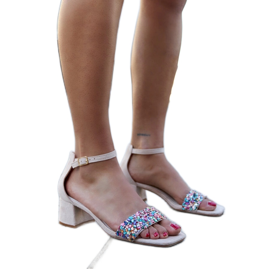Détails: Sandales à talons hauts avec pierres Ghuson colorées beige