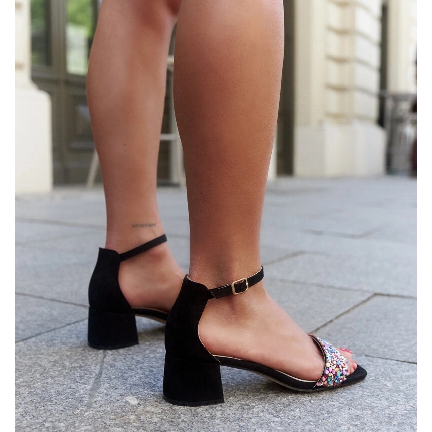 Détails: Sandales à talons hauts avec pierres Ghuson colorées le noir