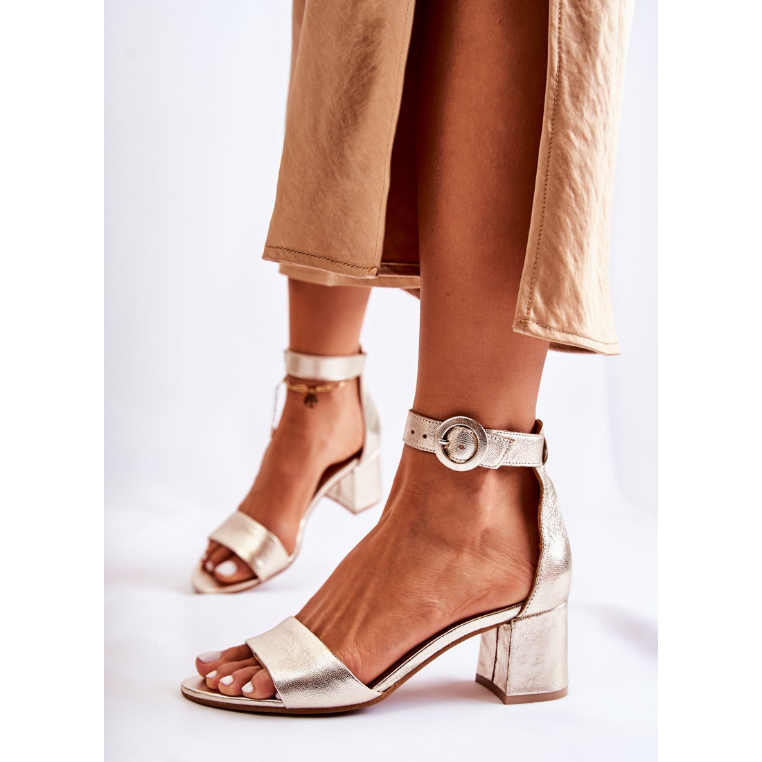Détails: Sandales à Talons Hauts en Cuir Maciejka 04141-42 Doré d'or