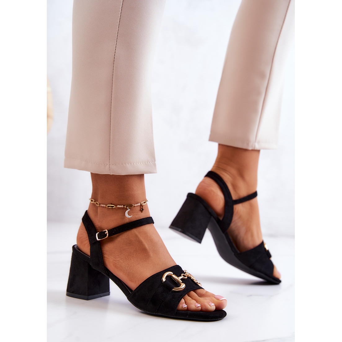 Investissez dans l'élégance et le confort au plus haut niveau - choisissez les sandales à talons hauts en daim avec décoration S.Barski, Black Darlen !