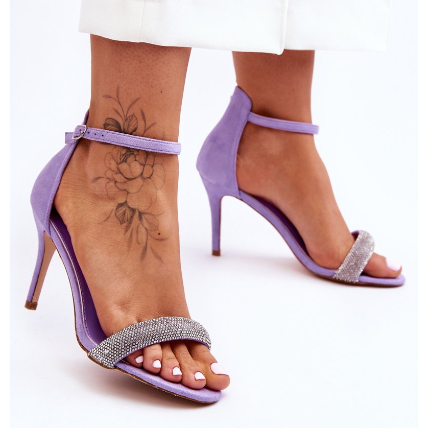 Détails: Sandales à talons hauts en daim avec strass violets Moments