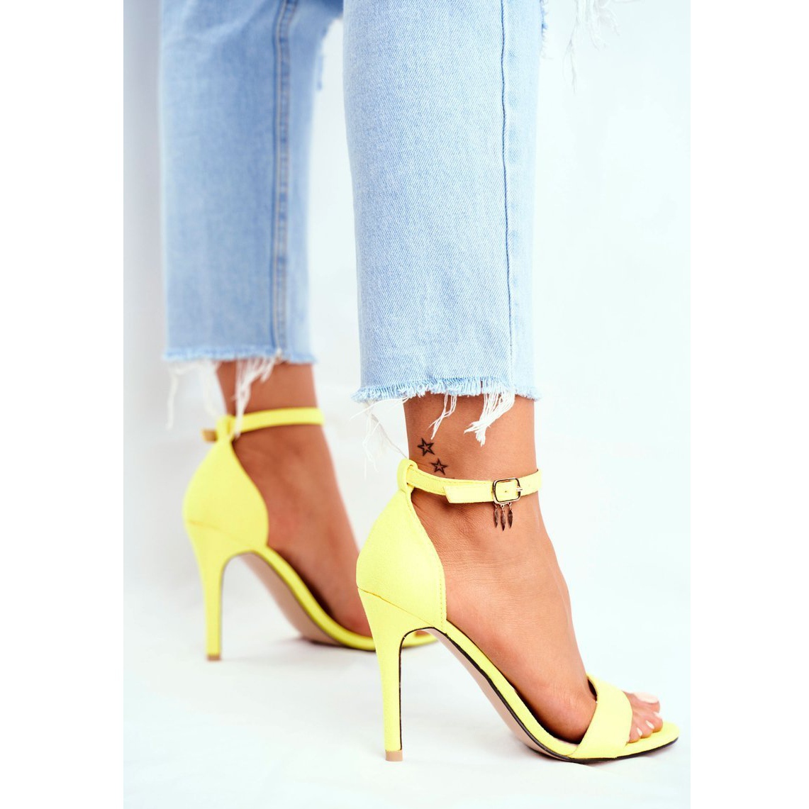Un talon haut stable de 10,5 cm affinera non seulement votre silhouette, mais assurera également un confort de port tout au long de la journée. La fermeture classique avec une sangle délicate ajoute du charme et permet de l'enfiler et de l'enlever facilement. Grâce à leur couleur jaune accrocheuse, ces sandales seront un complément parfait aux styles de tous les jours comme aux plus élégants.