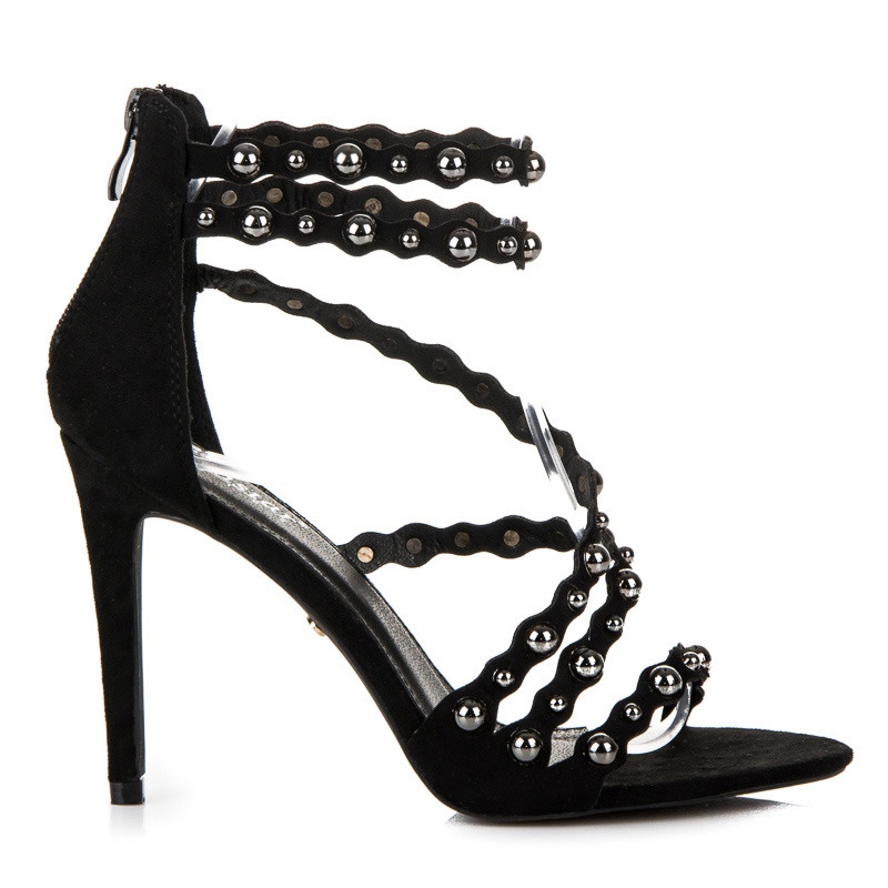 L'un des éléments les plus intéressants de ces sandales est leur riche décoration avec des strass ronds en métal, qui donnent du caractère aux chaussures et en font non seulement un complément, mais aussi un élément clé du style.