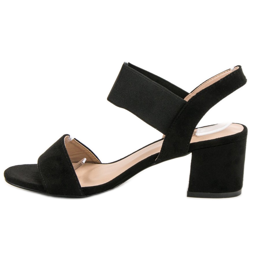Découvrez des sandales classiques à talons hauts dans une élégante couleur noire, qui complètent parfaitement la garde-robe de toute femme. Ces chaussures universelles en cuir écologique suédé s'adaptent parfaitement aux styles élégants et décontractés.
