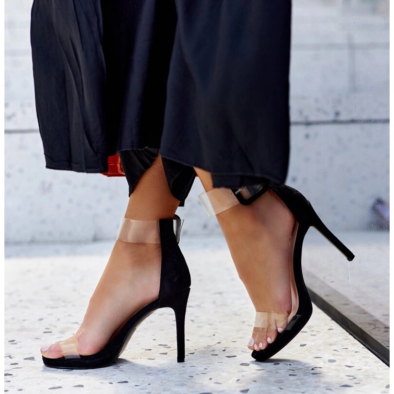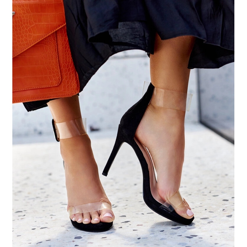 Détails: Sandales à talons hauts Janan avec tige transparente le noir