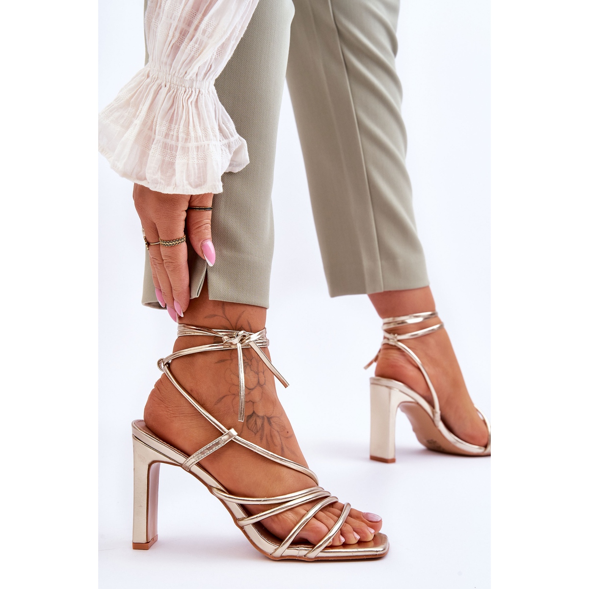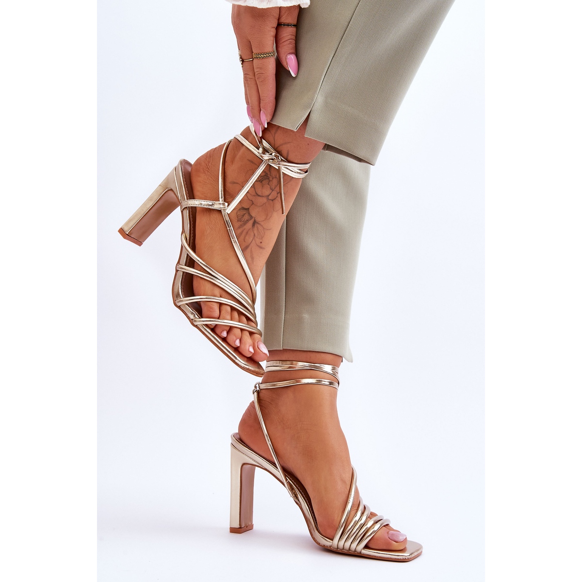 FJ1 Sandales à talons hauts nouées à la mode Gold Tessoro - L'élégance dans une édition dorée
