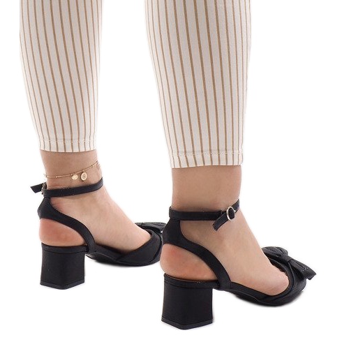 Découvrez l'élégance et le style avec les sandales à talons noires 1702-2 ! Ces chaussures pour femmes uniques, à l'esthétique classique, sont parfaites pour toutes les occasions. Leur bout long et pointu et un joli nœud brillant qui décore le devant des sandales ajoutent un charme extraordinaire et affinent la silhouette.
