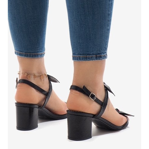Les sandales noires à talons hauts 173-852 sont le choix parfait pour les femmes qui souhaitent allier élégance et confort. Ces belles sandales, inspirées du style latino-américain, se distinguent par de fines brides qui s'enroulent subtilement autour du pied et des nœuds originaux qui leur donnent un caractère charmant.