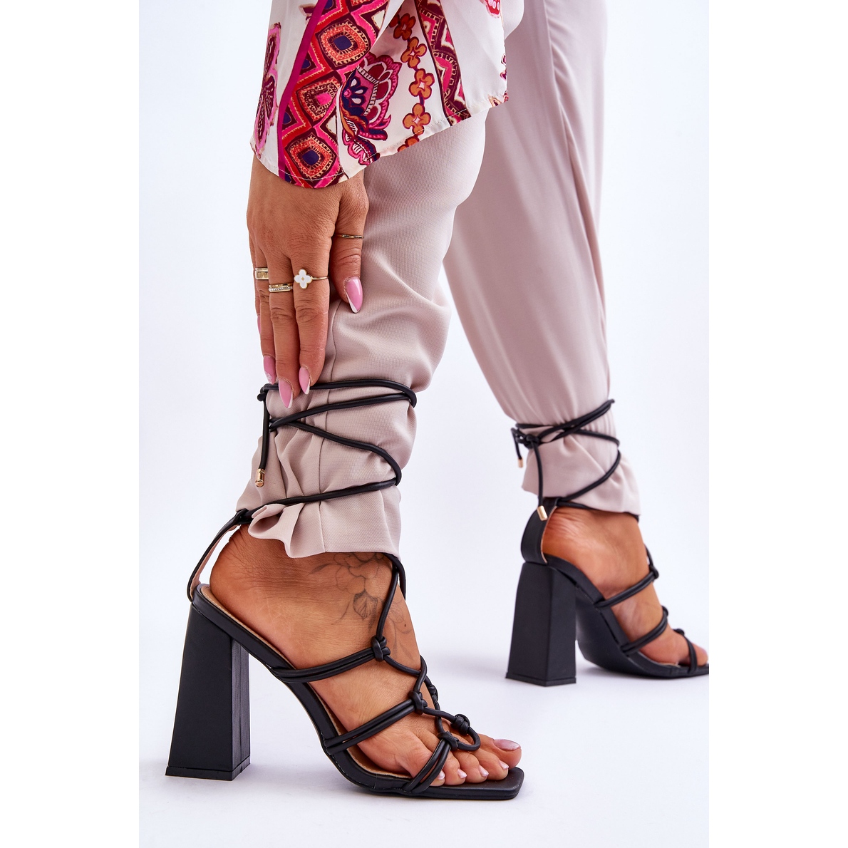 Détails: Sandales à Talons Nouées en Cuir Noir Amare le noir