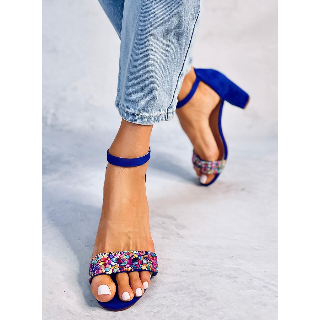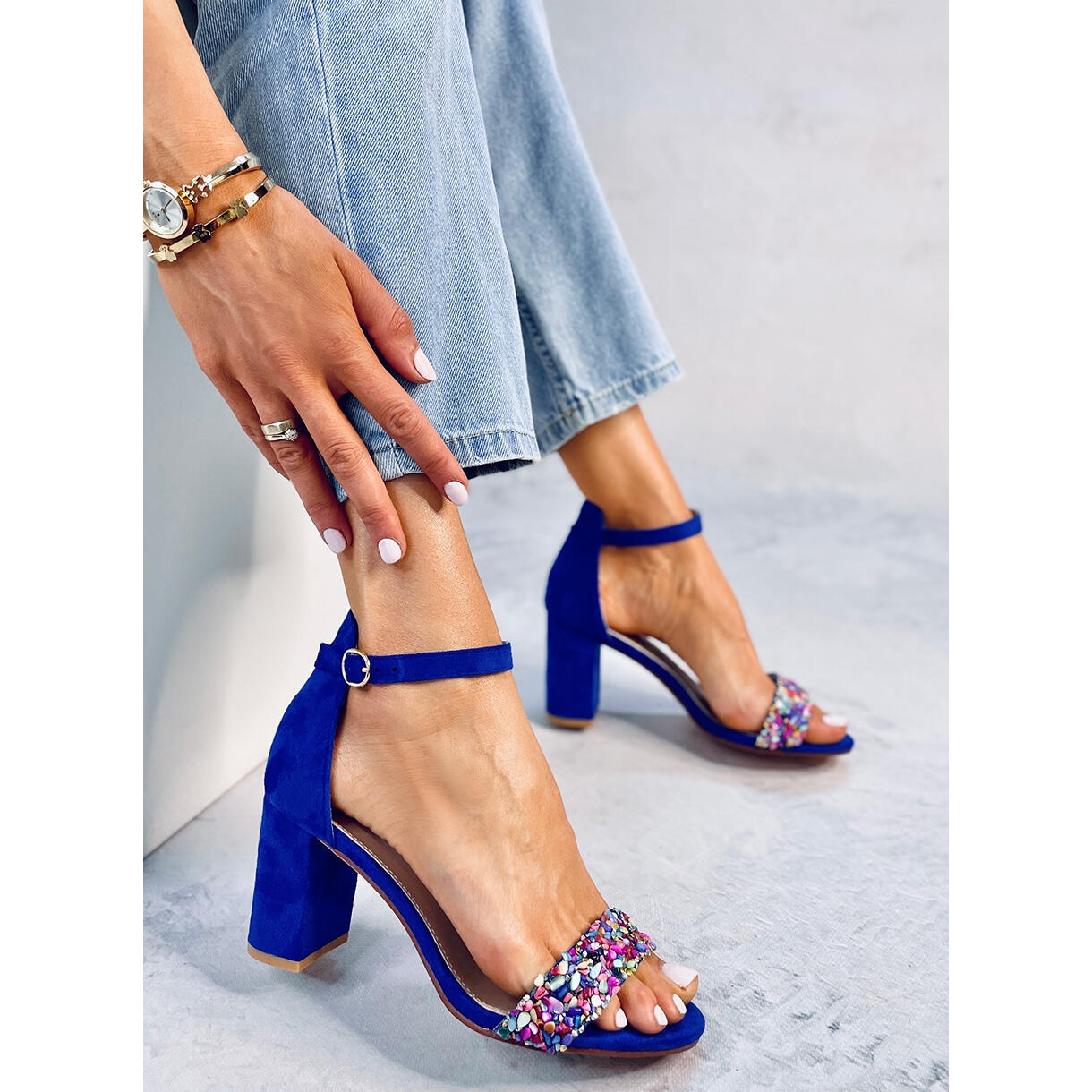 Découvrez une élégance unique avec les sandales à talons hauts Valentine Blue. Ces sandales en daim pour femme allient style unique et confort, grâce à un talon haut stable de 8 cm. Leur design unique attire l'attention et le joli bracelet parsemé de pierres multicolores et de zircons leur ajoute de la noblesse.