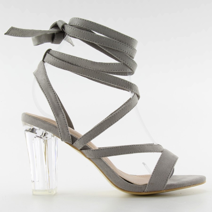 Sandales pour femmes exceptionnellement originales en daim écologique. Ils ont un talon transparent d'une hauteur de 10 cm et un lien autour de la cheville, ajoutant de la saveur aux chaussures. Si vous êtes fan du modèle original, vous l'aurez frappé ...