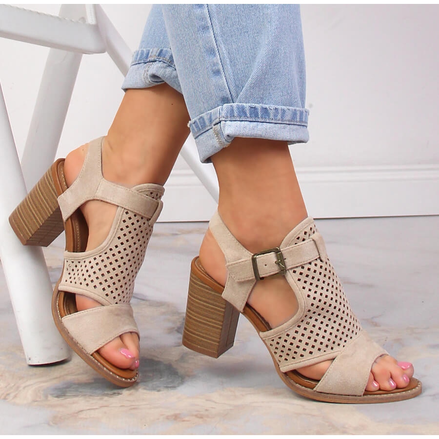Détails: Sandales à tige en daim avec tige beige ajourée eVento 3581