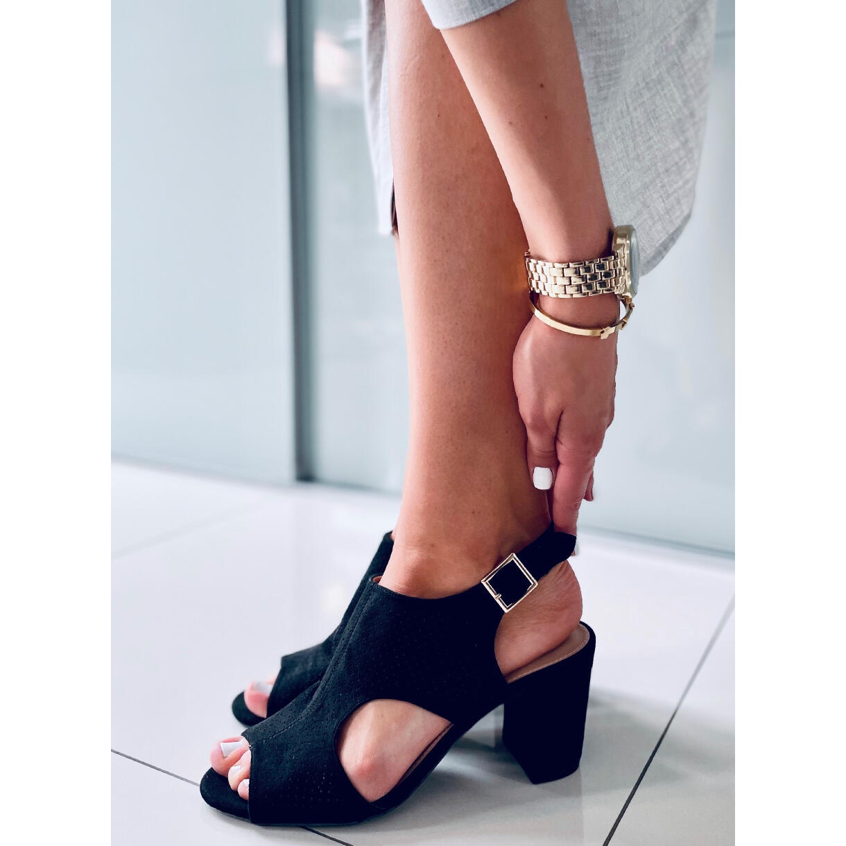 Découvrez l'extraordinaire sandales à talons hauts ajourées Stacy Black dans un élégant coloris noir. Ces sandales pour femme en daim allient mode et confort, offrant un talon de 8 cm qui sera parfait aussi bien au quotidien que pour les grandes occasions.