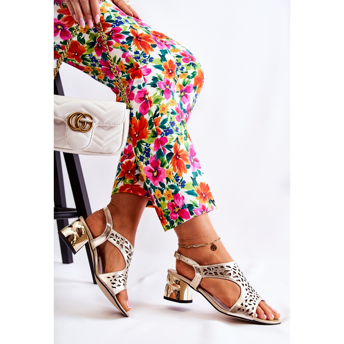 Détails: PA2 Sandales Ajourées En Cuir Sur Talons Hauts Doré Salvio d'or