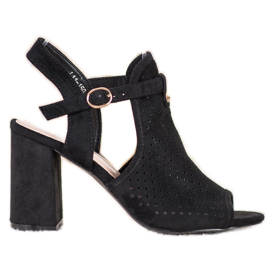Les sandales ajourées Small Swan noires sont un choix idéal pour les femmes qui apprécient l'élégance et le style unique. Fabriquées en cuir suédé écologique, ces sandales allient des matériaux de haute qualité et un design tendance. Elles ont un talon haut de 9 centimètres, qui ajoute de la classe à n'importe quel style.