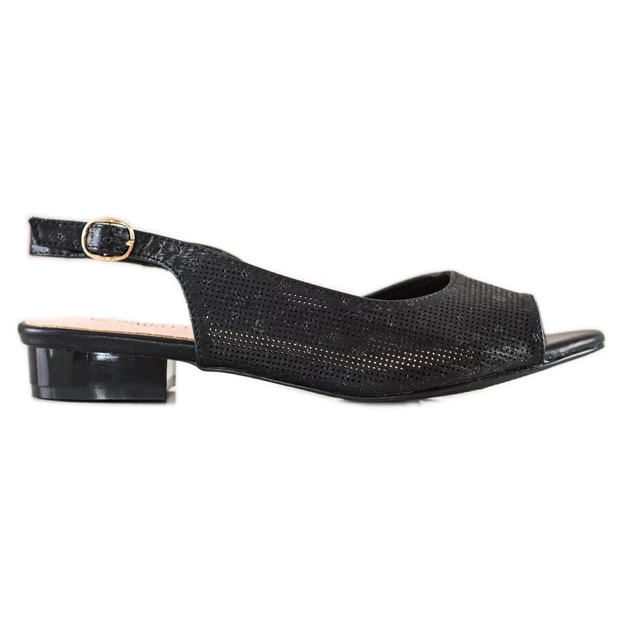 **Les sandales à talons bas ajourées Sabatina, noires** sont un choix parfait pour les journées de printemps et d'été qui allient élégance et confort. Ces sandales uniques du fabricant Sabatina appartiennent à la catégorie des chaussures pour femmes et sont parfaites aussi bien pour les célébrations que pour la vie de tous les jours.