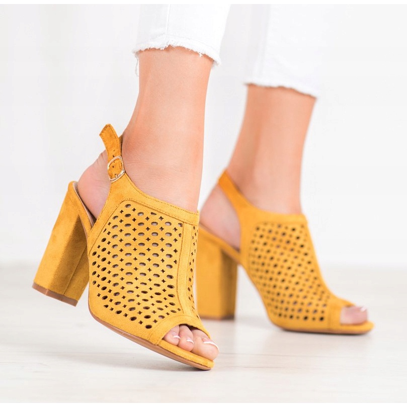 Weide Weide Sandales Ajourées Sur Un Bar jaune