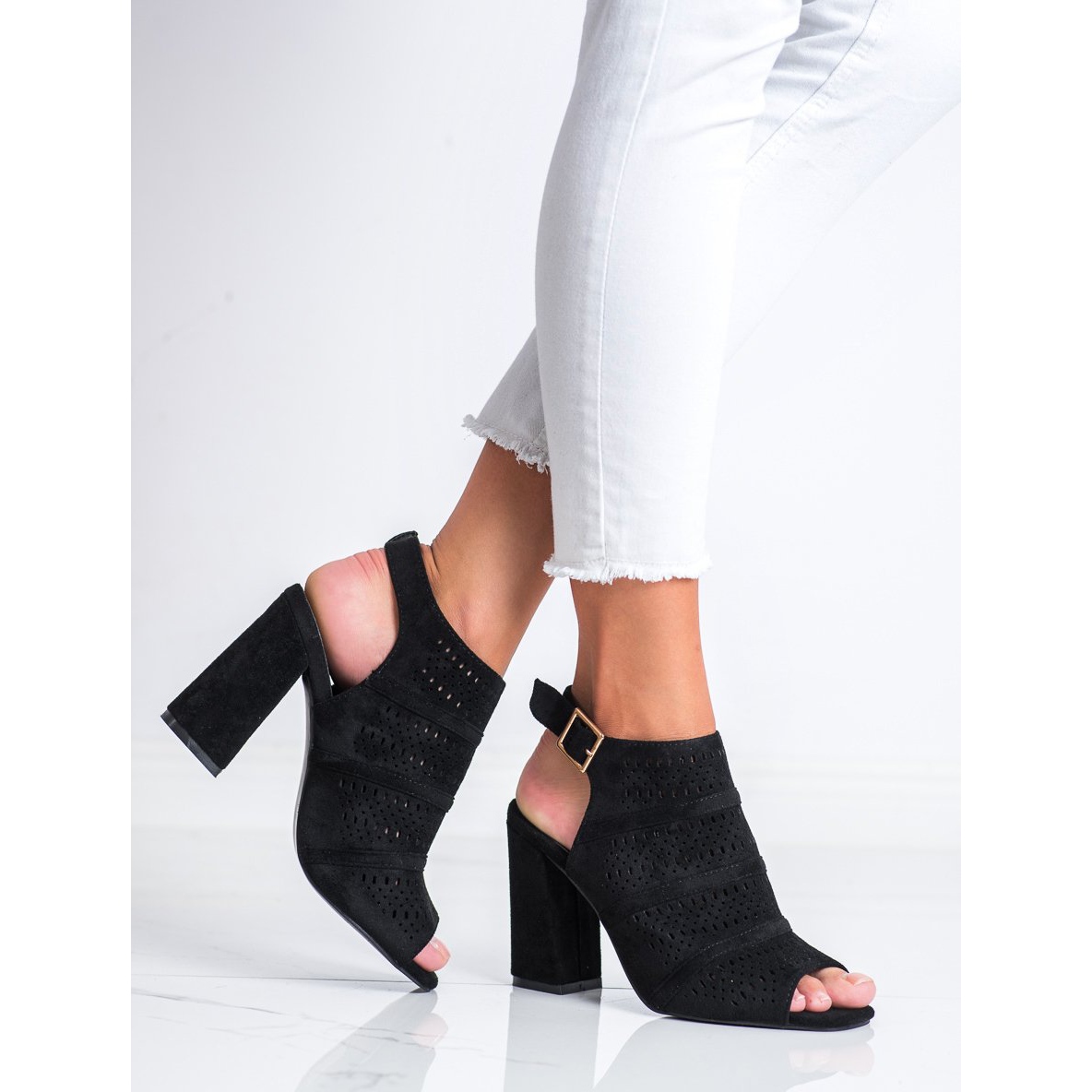 Nous vous présentons les sandales ajourées sur talon haut Renda dans une élégante couleur noire, parfaites pour toute occasion spéciale. Ces sandales élégantes sont un choix parfait pour les soirées, les fêtes ou les célébrations, alliant non seulement une apparence attrayante mais aussi un confort de port.