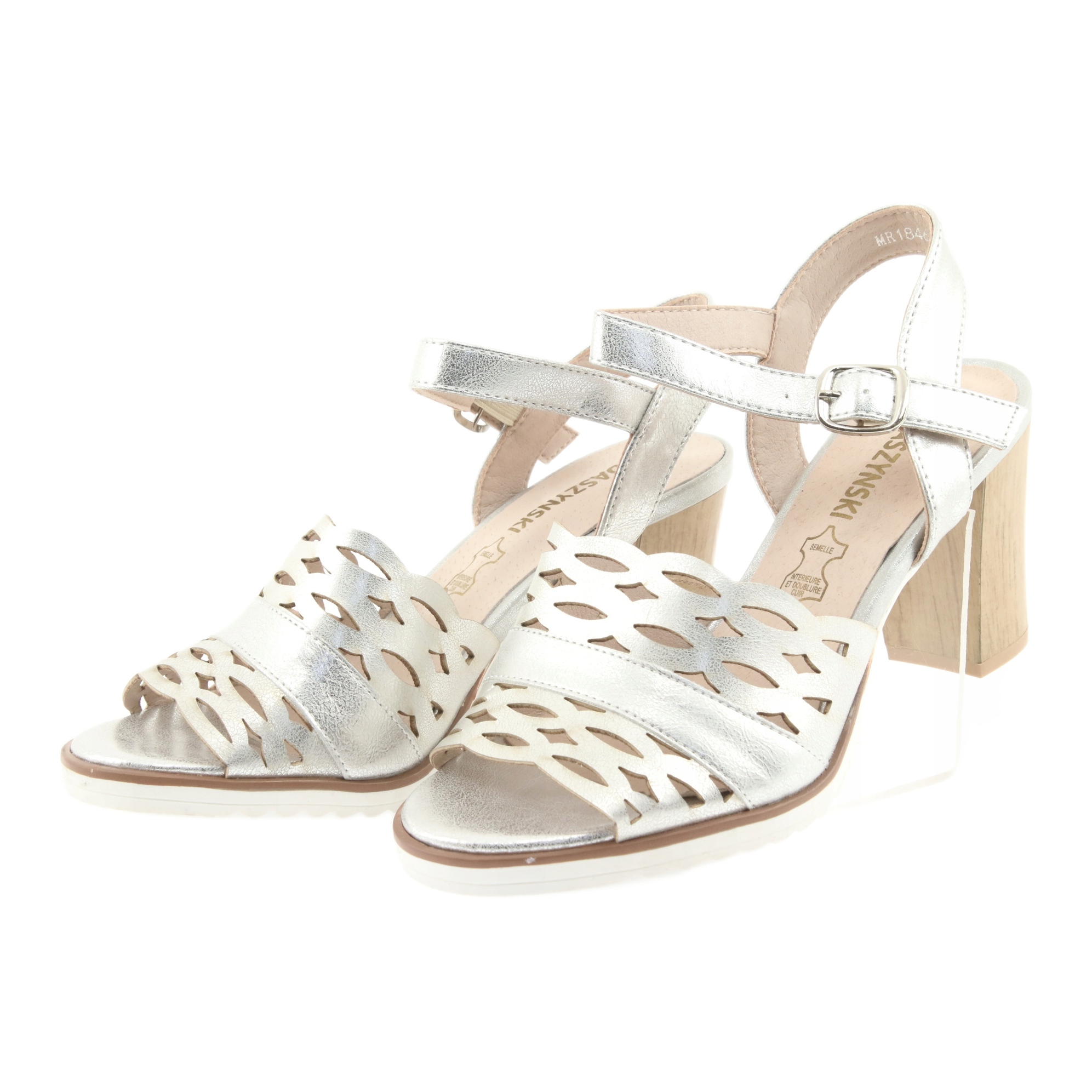 Découvrez l'élégance et le style avec les sandales argentées M.Daszyński 1846. Ces sandales pour femmes uniques, fabriquées en cuir écologique de haute qualité, séduisent par leur design classique et leur finition argentée accrocheuse. Grâce à l'insert en cuir naturel, les porter est un pur plaisir et le confort est garanti à chaque pas.