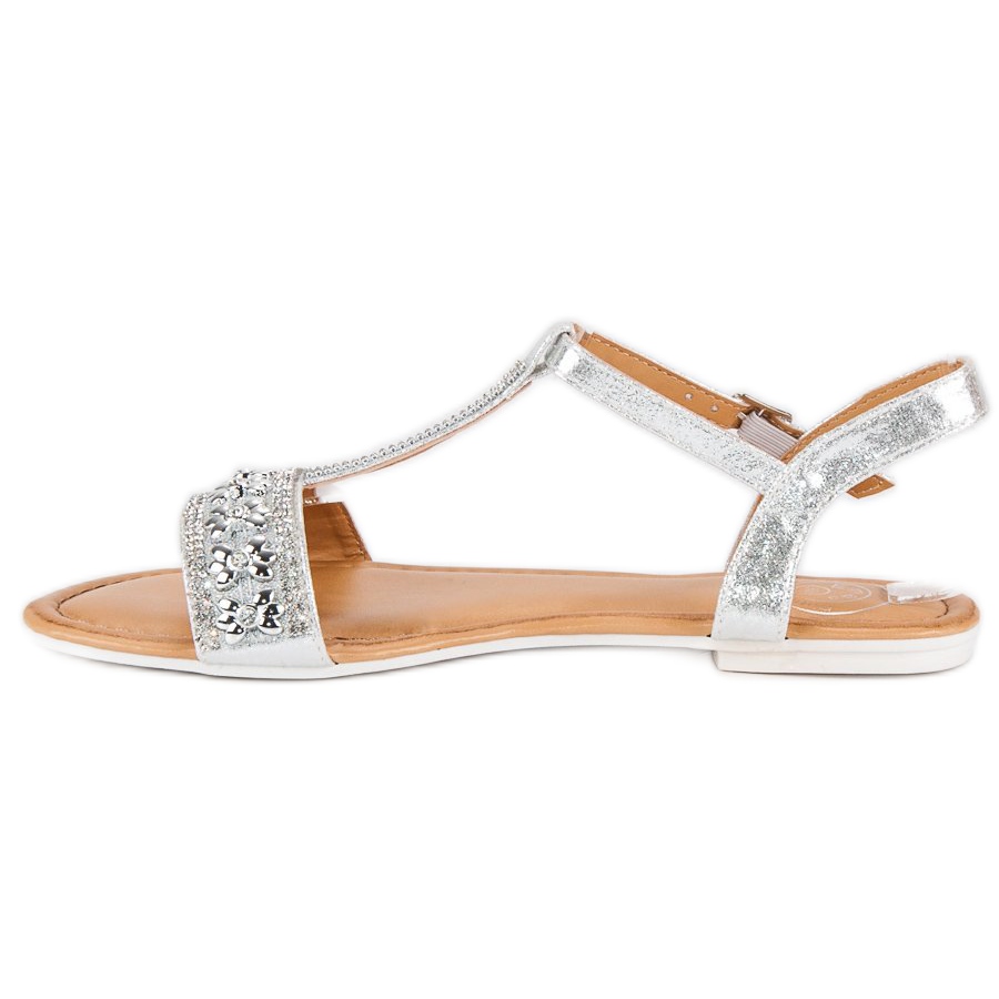 Détails: Sandales argentées avec perles gris