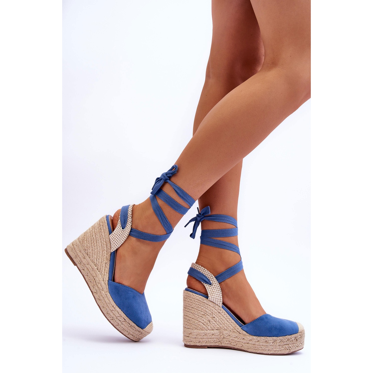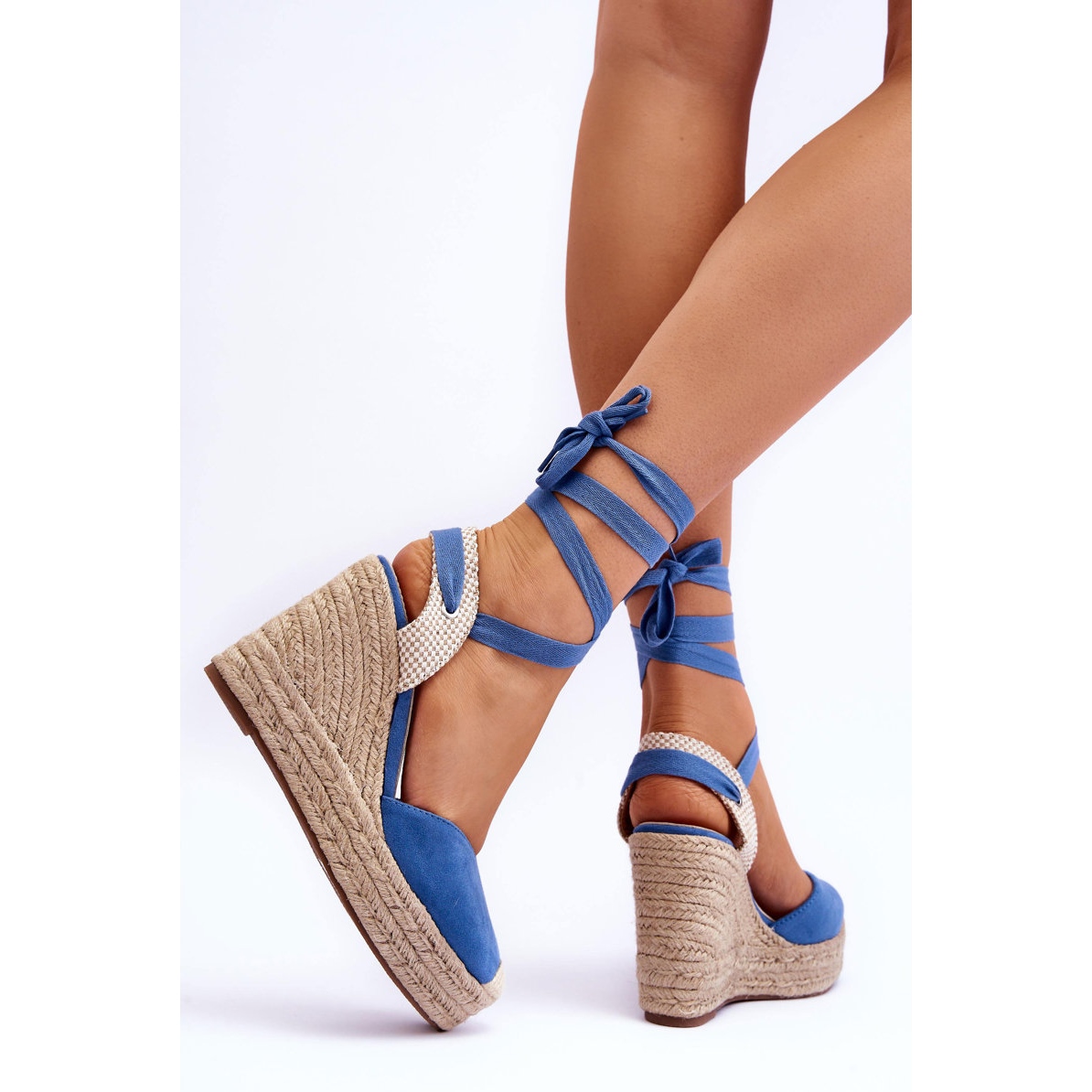 Détails: Sandales Attachées Sur Un Haut Compensé Bleu Lendy