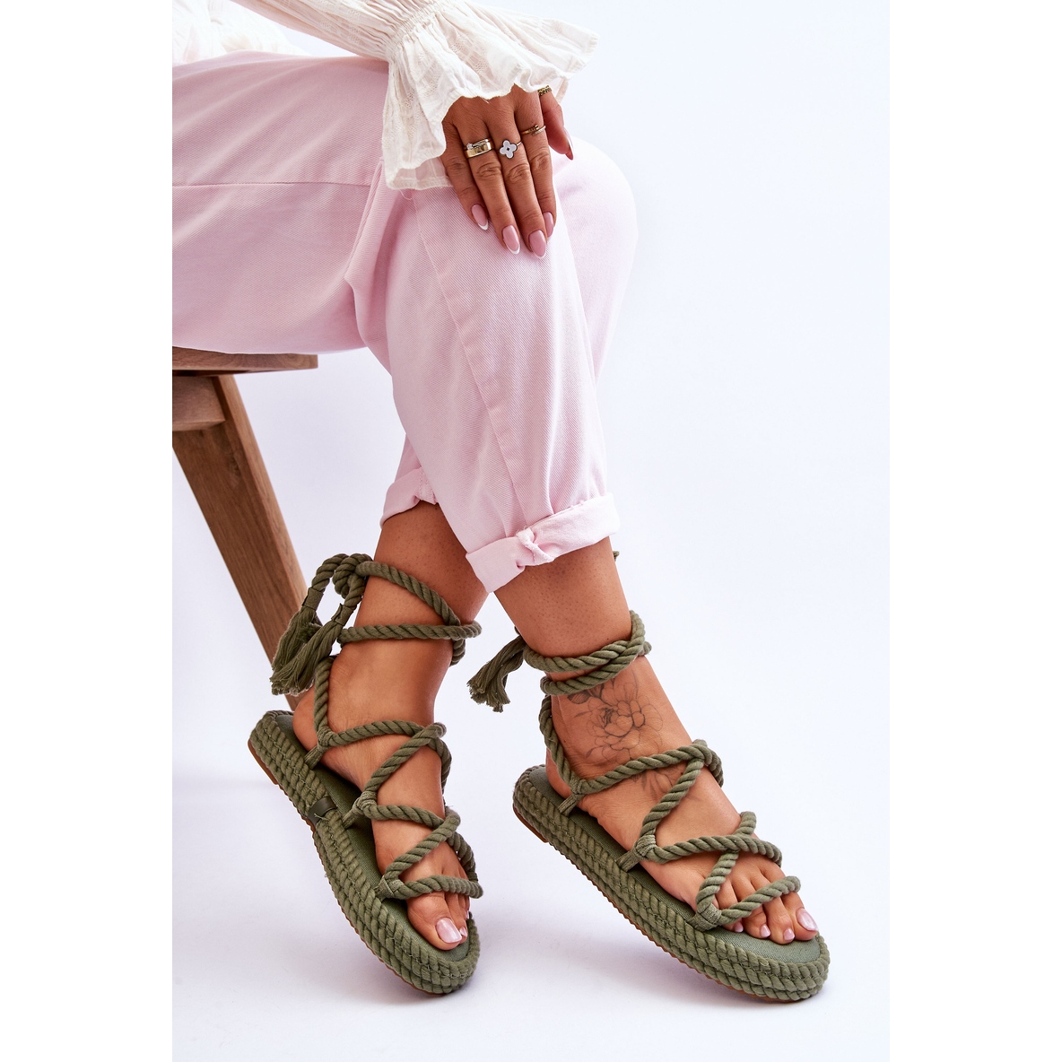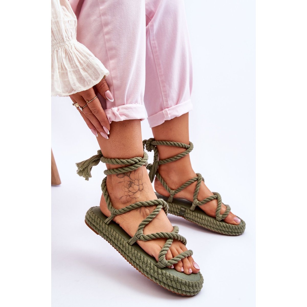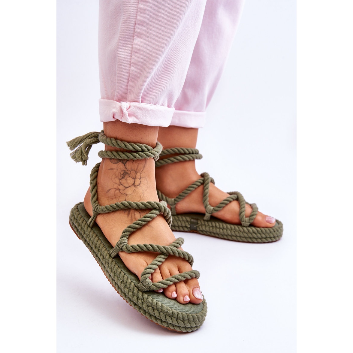 Nous vous présentons les sandales nouées sur une plateforme massive en vert de la collection Can't Wait, qui s'adapteront parfaitement à votre style estival. Fabriquées en tissu doux, ces sandales sont confortables à porter toute la journée. Les bretelles en forme de ficelles terminées par des pompons leur confèrent un caractère unique, et la possibilité de les nouer autour du mollet vous permet de les adapter à vos besoins.