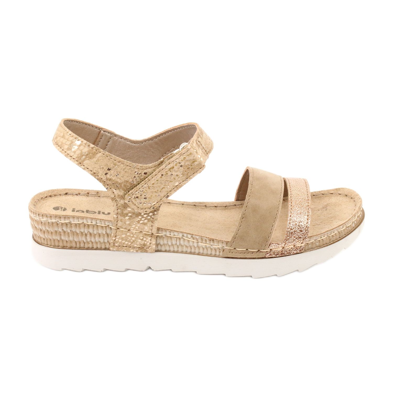 Détails: Sandales avec empiècement en cuir Inblu Platino OF019 beige d'or