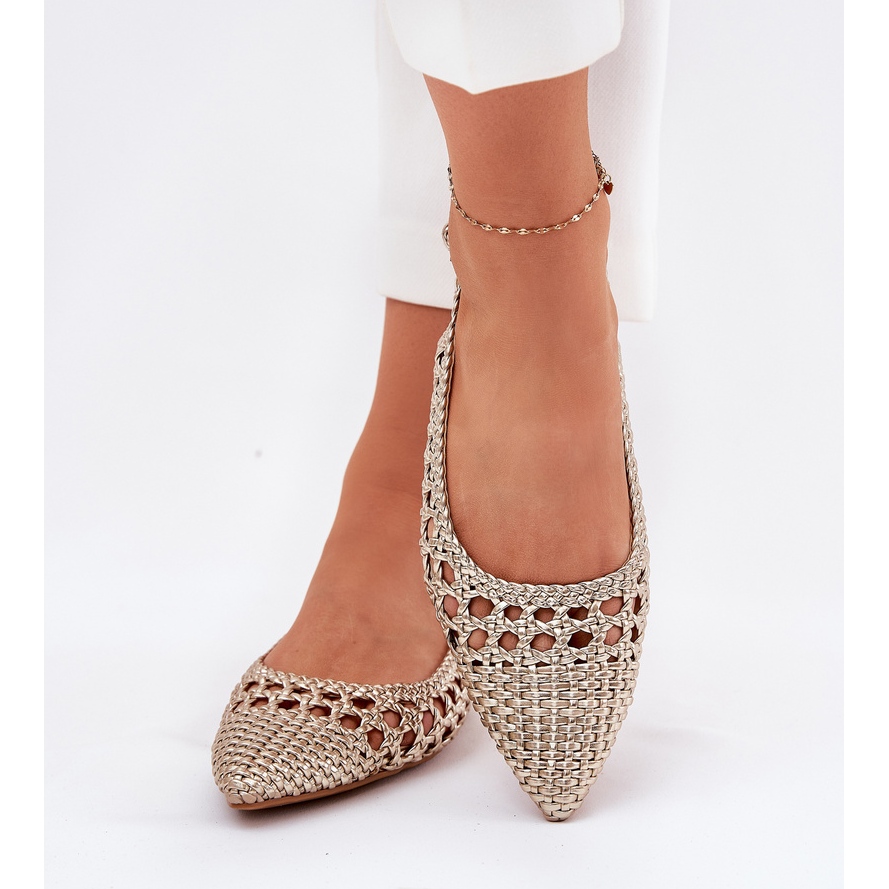 Ces sandales ont un insert en cuir écologique doux, ce qui garantit le confort de porter toute la journée, et leur coupe ouverte les rend extrêmement aérés, parfaits pour les jours chauds. La couleur dorée se marie magnifiquement avec diverses combinaisons - des robes aérées aux jupes élégantes aux pantalons décontractés. Grâce à eux, chaque stylisation gagnera un caractère unique.