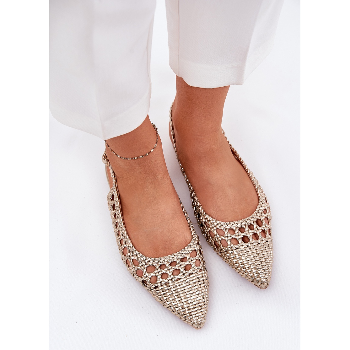 Découvrez l'élégance et le réconfort en été grâce aux sandales féminines à partir d'une nuance d'or. Ces sandales uniques sont caractérisées par des orteils pointés qui ajoutent une classe subtile de toute stylisation. Leur fixation sur la boucle vous permet de correspondre parfaitement à la forme du pied, ce qui les rend extrêmement confortables.