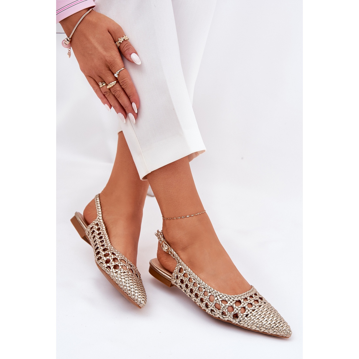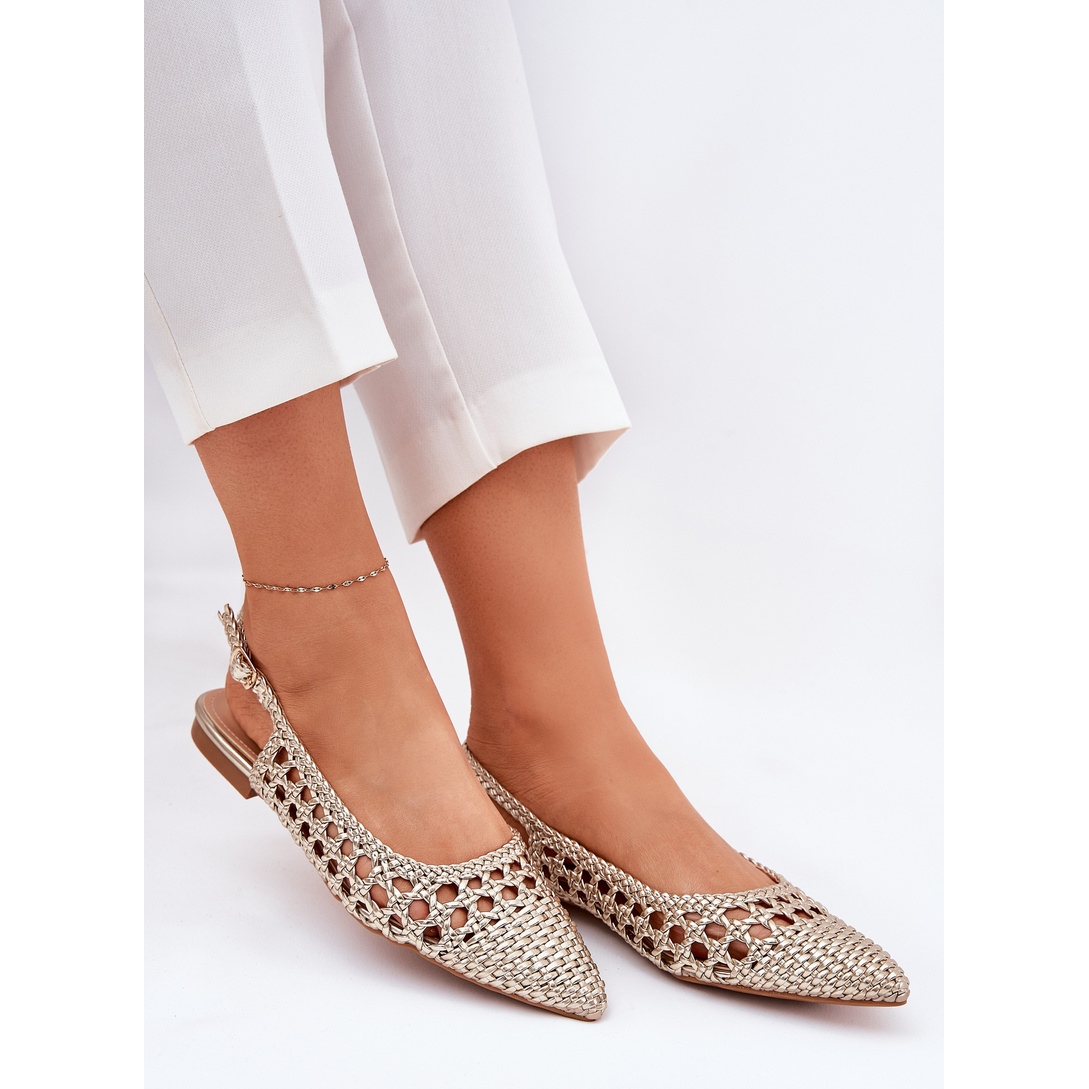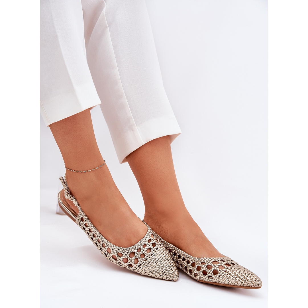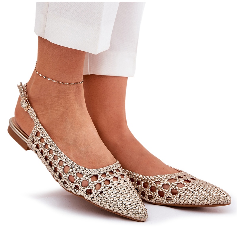 Détails: Sandales avec tresse et orteils pointues or d'or