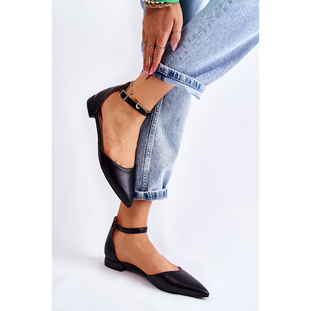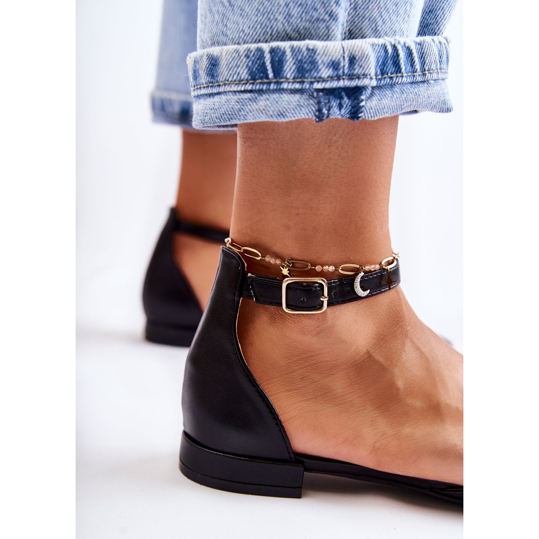 Le modèle se caractérise par une coupe tendance et une fermeture confortable avec une bride réglable avec boucle, qui permet un ajustement parfait au pied. Le talon bas et plat assure un confort de port et la semelle intérieure en cuir écologique souple vous permet de profiter de chaque instant dans ces ballerines. De plus, le contrefort de talon renforcé et le bout pointu offrent un look élégant et sophistiqué.