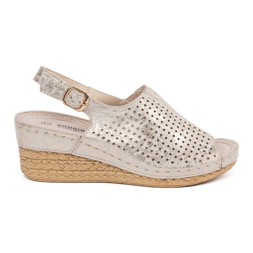 Les sandales de Goodin dans une teinte beige sont la combinaison parfaite de style et de confort, qui plaira certainement à chaque femme moderne. Ces chaussures de coin ouvert, en cuir écologique, se distinguent par un beau motif à la mode et une légèreté extraordinaire, ce qui en fait un excellent choix pour les journées d'été chaudes.