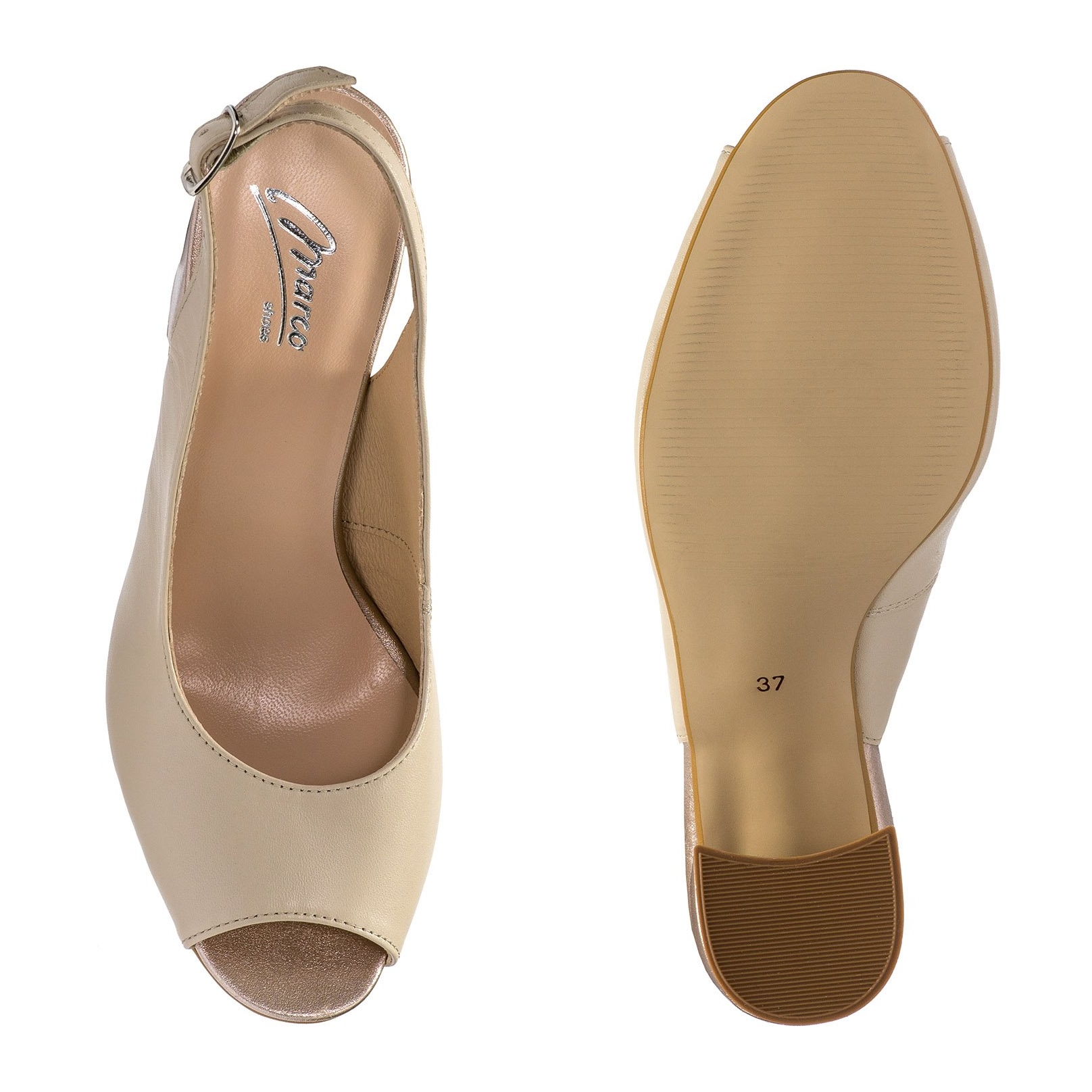 Le caractère unique des sandales Marco Shoes est souligné par leur design esthétique en cuir fleur naturel. La tige en cuir et la semelle intérieure offrent à vos pieds non seulement un confort inégalé, mais également une respirabilité adéquate, ce qui est important lors des journées les plus chaudes. La délicate teinte beige s'intègre facilement à n'importe quel style estival, du plus décontracté au plus formel.