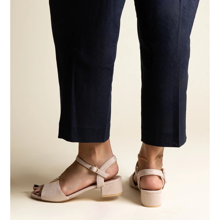 Détails: Sandales beiges à petit talon avec boucle Horner