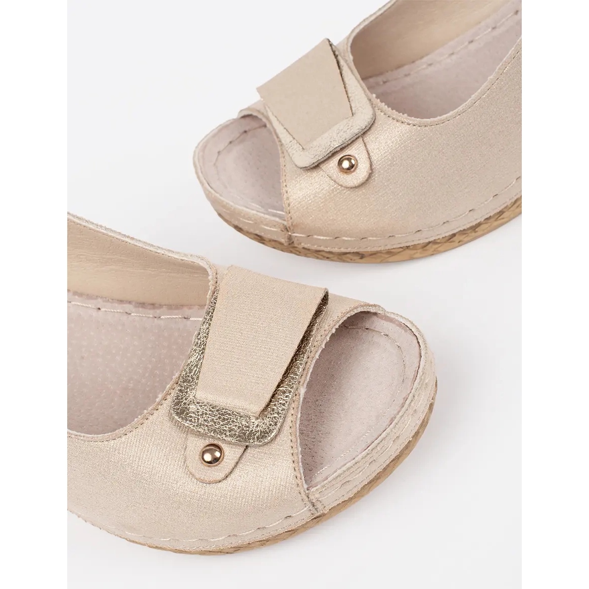 Grâce à la boucle, vous pouvez adapter rapidement et facilement leur fixation à vos besoins. La couleur beige rend ces sandales parfaitement se mélangent à diverses stylifications - du quotidien à plus élégant.