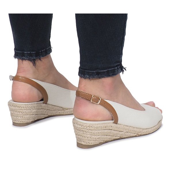 Une cale de 5 centimètres de hauteur offre non seulement un confort supplémentaire lors de la marche, mais allonge également optiquement la silhouette. Grâce à la fermeture à boucle au niveau de la cheville, ces chaussures s'ajustent parfaitement à la jambe, ce qui les rend parfaites pour les longues promenades ou les sorties estivales.
