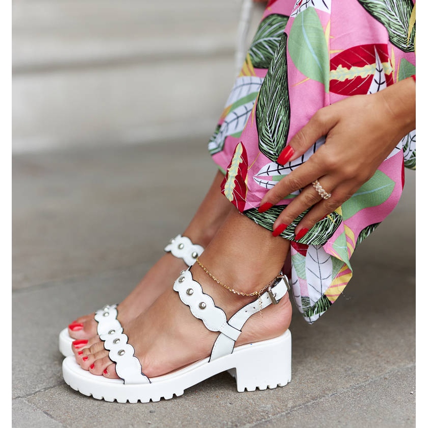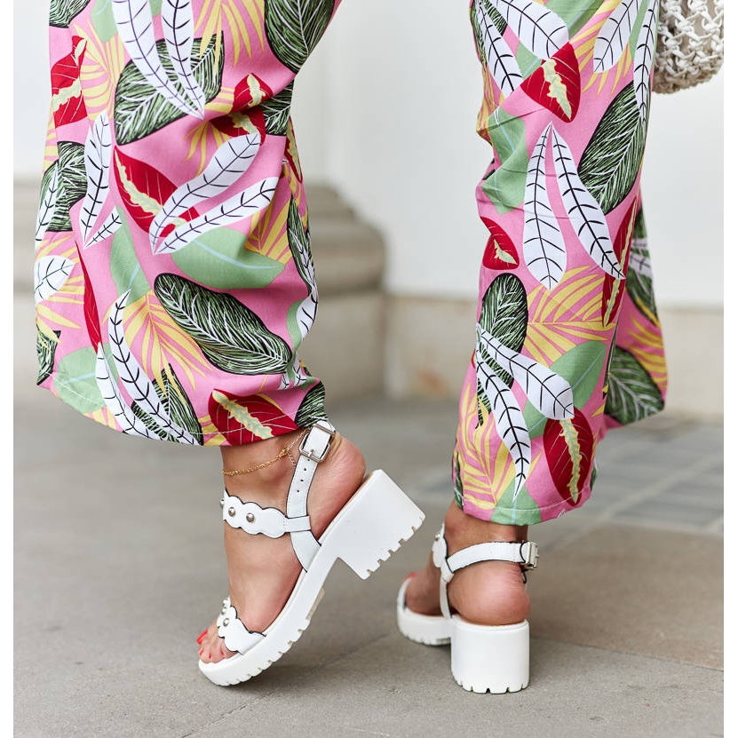 Fabriquées en cuir écologique de haute qualité, les sandales assurent un confort de port tout au long de la journée. La couleur blanche leur confère un caractère universel et les strass décoratifs ajoutent une subtile touche de brillance. Grâce à un talon confortable de 5 cm, elles complètent parfaitement les tenues du quotidien comme les plus élégantes.