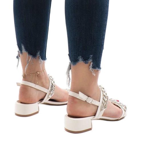 Découvrez l'élégance et le confort avec les sandales à talons hauts blanches 77-15, le choix parfait pour les femmes modernes. Dotées d'une fermeture à boucle, ces sandales uniques combinent parfaitement un style classique avec des accents modernes. Une chaîne décorative enlaçant les chaussures à deux endroits leur confère un caractère unique qui attire l'attention et met en valeur n'importe quel style.