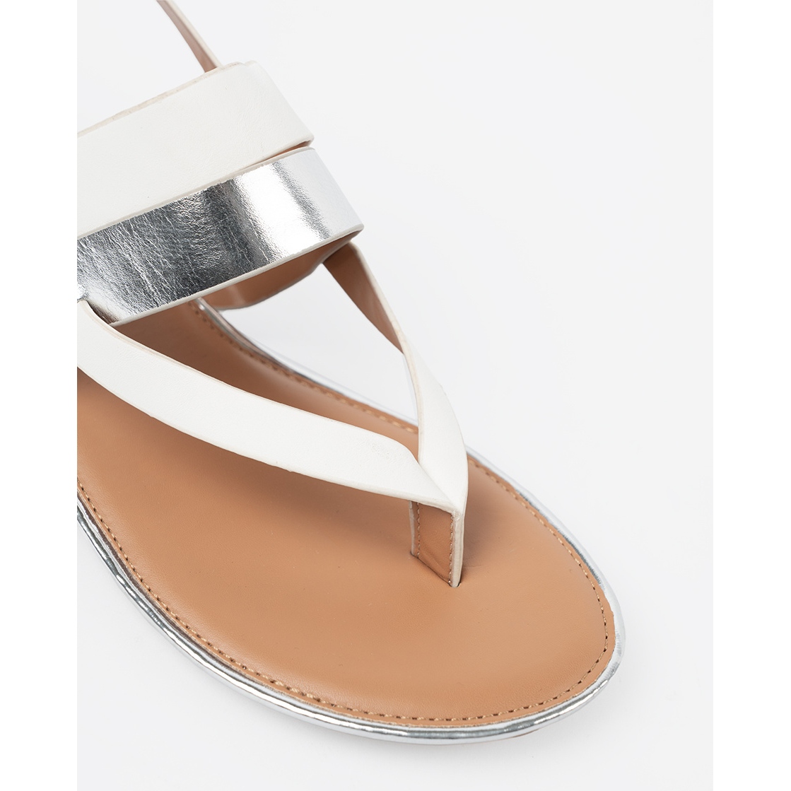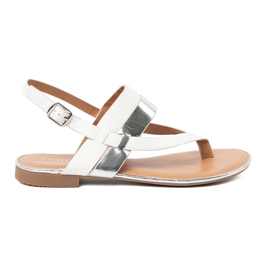 Détails: Shelvt Sandales blanches et argentées avec une large ceinture multicolore