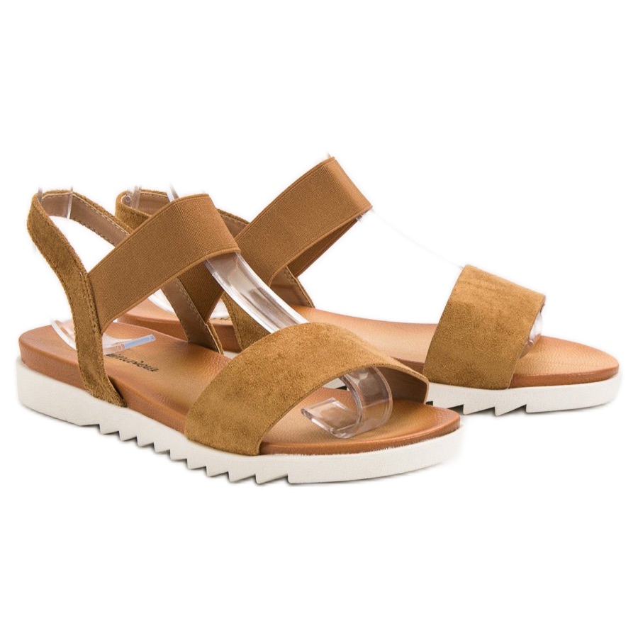 Ce modèle se distingue par un talon plat atteignant 3 cm de hauteur, ce qui les rend extrêmement confortables et stables. La semelle intérieure en cuir écologique assure le confort de vos pieds et le matériau extérieur en daim donne aux sandales un look élégant. L'absence de bout et de talon ouvert en font des chaussures parfaites pour les chaudes journées d'été.