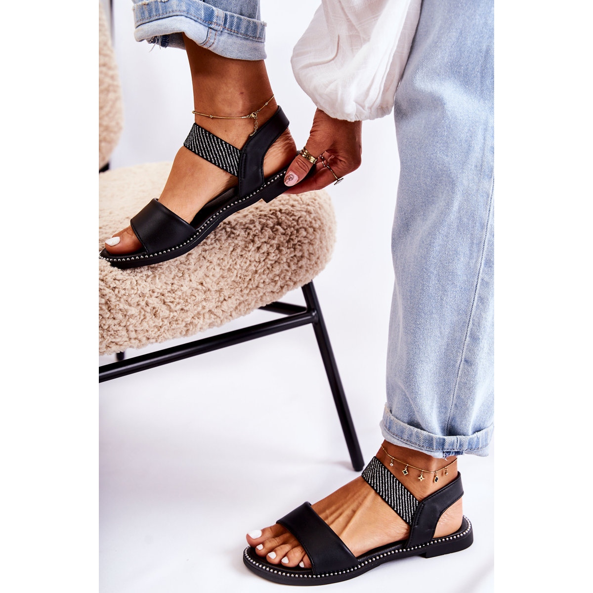 Un talon plat de 1,5 cm de haut et une semelle antidérapante vous permettent de vous sentir en confiance à chaque pas, quelle que soit la surface. Le bout ouvert et arrondi ajoute de la légèreté à l'ensemble du style, et de subtils strass confèrent aux sandales un caractère unique.
