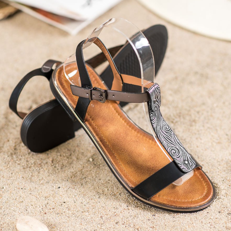 Small Swan Sandales classiques avec cuir écologique noir