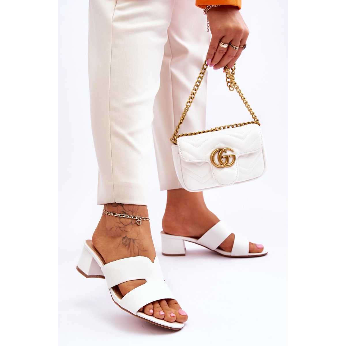 Nous vous présentons les tongs FJ1 classiques en cuir à talons bas dans une élégante couleur blanche, qui seront un complément parfait à votre garde-robe. Fabriqués entièrement en cuir écologique de haute qualité, ils offrent à la fois fonctionnalité et style. Leur coupe moderne, terminée par de délicates découpes sur les côtés de la tige, les rend extrêmement tendance et en même temps confortables.