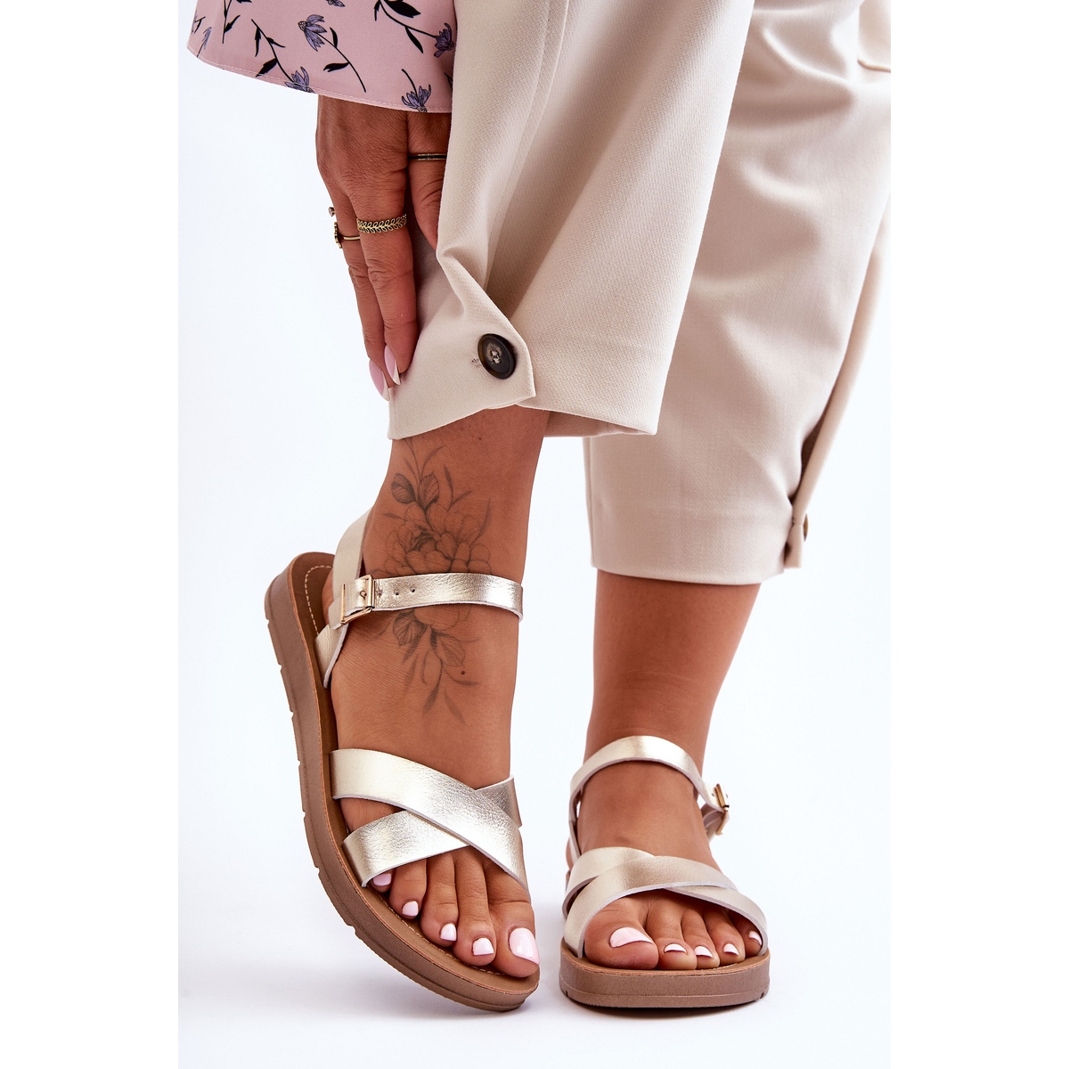 Sandales classiques en cuir pour femmes Golden Talisma - style et confort à chaque pas