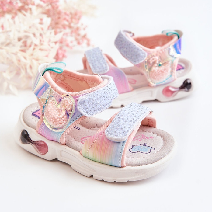 Détails: PJ2 Sandales Classiques Enfant Avec Velcro Multicolore Darrin rose
