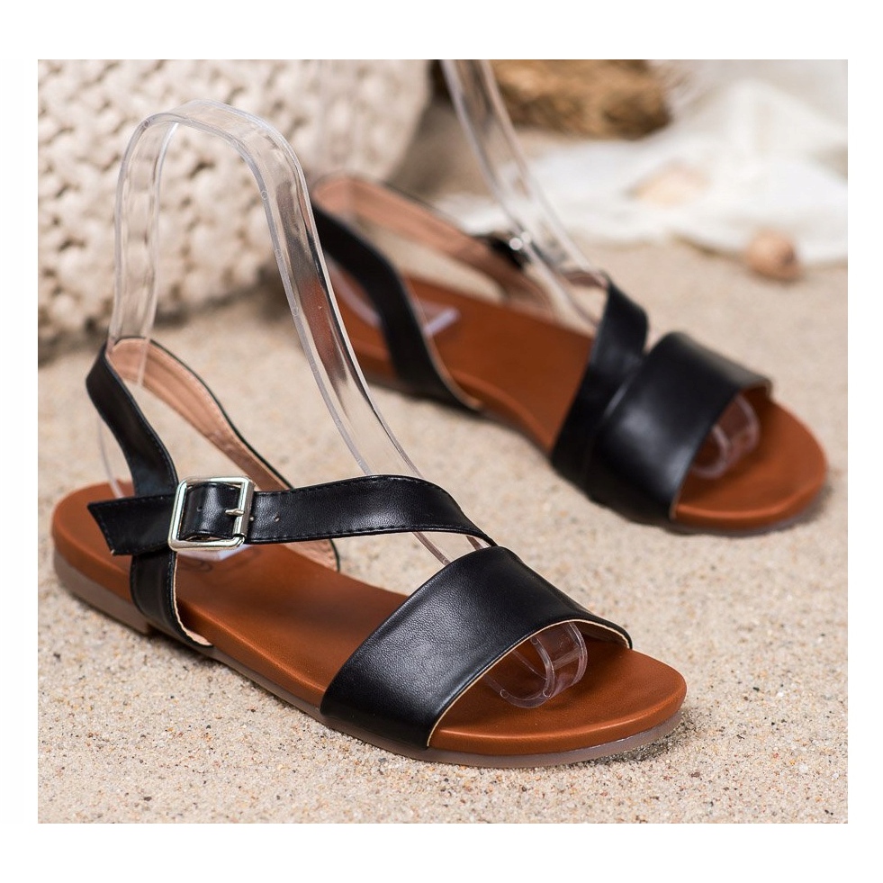 Les sandales sont disponibles dans une couleur noire intemporelle, ce qui en fait un modèle extrêmement universel : elles s'adaptent aux robes d'été, aux jupes et aux pantalons décontractés. Leur semelle lisse et synthétique offre une bonne adhérence, ce qui augmente le confort d'utilisation.