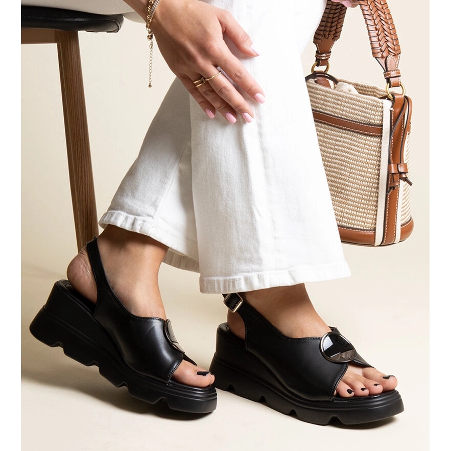 Les sandales compensées noires à boucle sont synonymes d'élégance alliée à un design moderne. Elles s'intègrent parfaitement au climat estival et à la nécessité de porter des chaussures à la fois élégantes et confortables au quotidien. Les concepteurs de ces chaussures se sont concentrés sur les détails qui se traduisent par une expérience unique pour ceux qui les portent.
