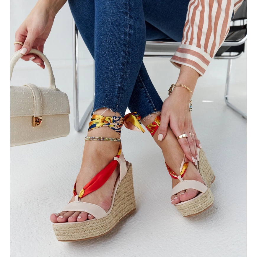 Inna marka Sandales compensées à lacets beiges par Aziza